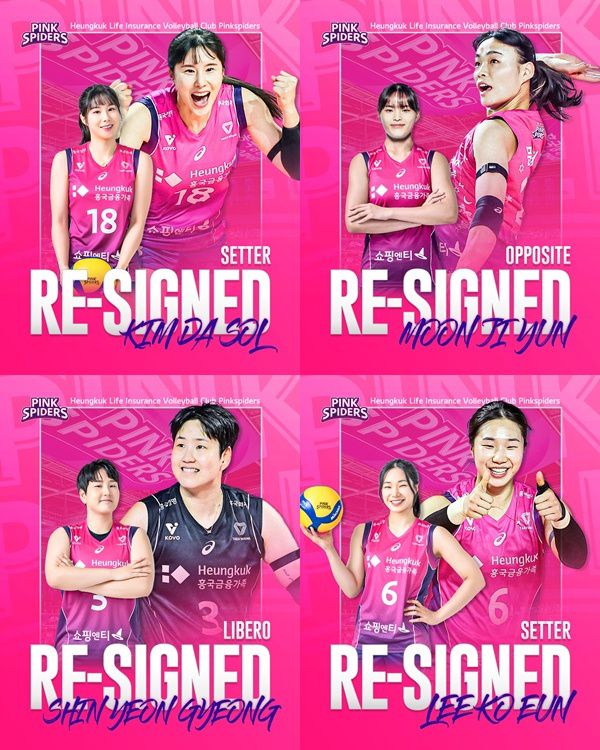[스포츠투데이 이상필 기자] 프로배구 흥국생명 핑크스파이더스가 자유계약선수(FA) 자격을 얻은 선수 4명과 재계약을 완료했다.