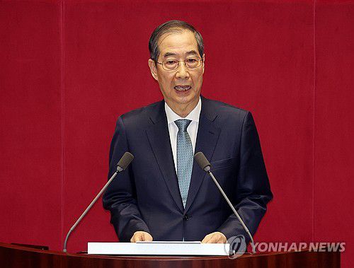 (서울=연합뉴스) 박동주 기자 = 한덕수 대통령 권한대행 국무총리가 24일 국회 본회의에서 추가경정예산안 시정연설을 하고 있다. 2025.4.24 pdj6635@yna.co.kr