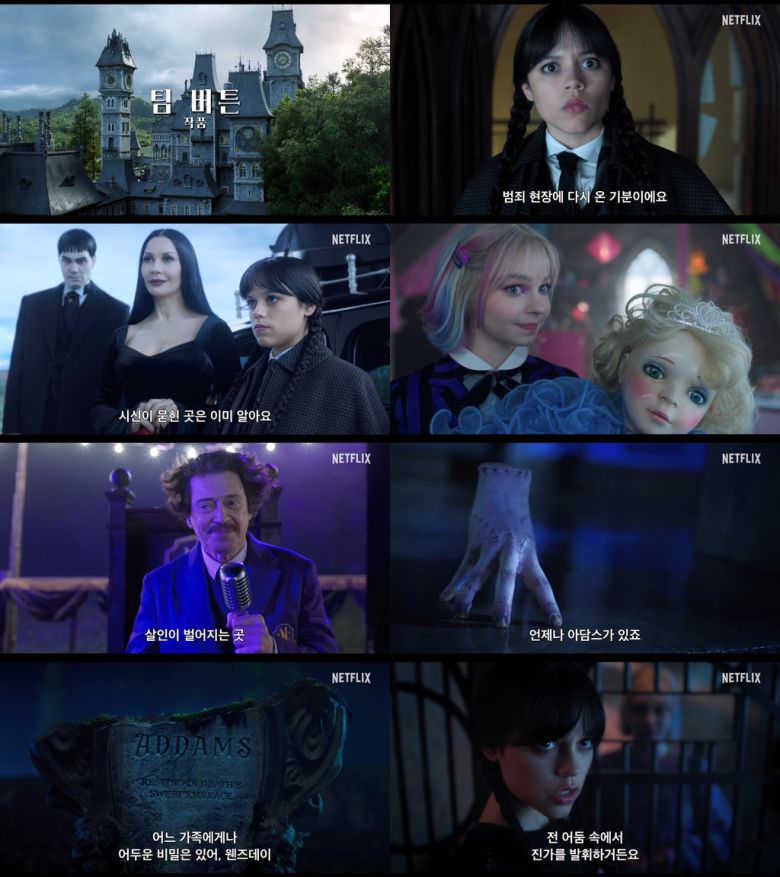 넷플릭스 글로벌 TOP 10 TV(영어) 부문 역대 1위, 무려 17억 시간이 넘는 시청 시간을 기록하며 전 세계적인 신드롬을 일으킨 넷플릭스 시리즈 '웬즈데이'가 팀 버튼의 연출과 함께 시즌2로 돌아온다. 공개된 티저 예고편은 공항 검색대에서 소지품 검사를 받고 있는 '웬즈데이'(제나 오르테가)의 모습으로 시작한다. 너클부터 전기충격기, 쌍절곤, 칼까지, 누가 봐도 수상하고 의심스러운 무기들을 가득 챙긴 '웬즈데이'와 달리 선크림을 챙긴 '씽'(빅터 도로반투)을 보고 어이없어하는 '웬즈데이'의 모습은 잘린 손이 마치 반려동물 같기도, 친구 같기도 한 모습으로 늘 함께하는 둘의 특별한 관계를 다시 떠오르게 만든다. 학교로 돌아온 소감을 묻는 엄마 '모티시아'(캐서린 제타 존스)의 질문에 “범죄 현장에 다시 온 기분이에요”라고 대답하는 '웬즈데이'의 말처럼, 정체를 알 수 없는 생명체에게 죽임을 당하고 있는 한 사람의 모습부터 소름 끼치는 인형들에 둘러싸여 묶여 있는 '웬즈데이'의 모습은 이번 시즌에서도 그의 앞에 예측할 수 없는 미스터리한 사건들이 펼쳐질 것임을 예감케 한다. “어느 가족에게나 어두운 비밀은 있어, 웬즈데이. 그리고 비밀은 치명적인 결과를 초래할 수 있지”라는 의미심장한 '모티시아'의 말은 그가 말하는 가족의 비밀과 그에 따른 결과는 무엇일지 호기심을 증폭시킨다.