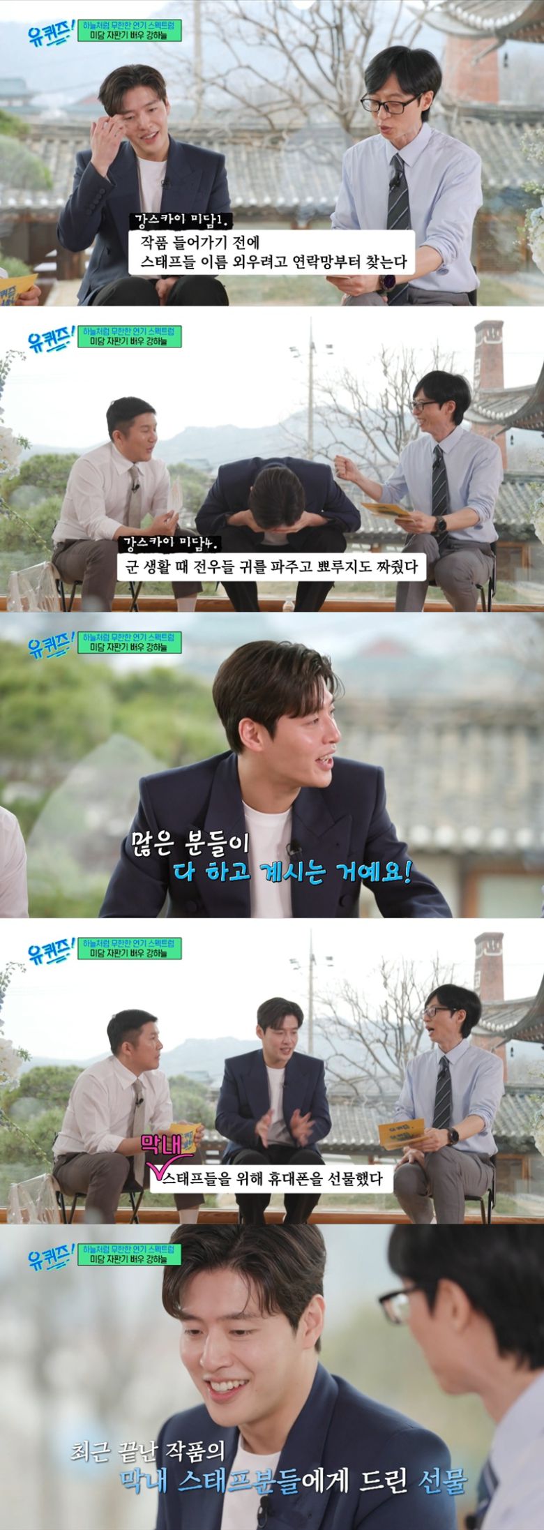 '미담 자판기' 강하늘, 휴대폰 선물까지..."유재석 영향" 훈훈 (유퀴즈)[종합]
