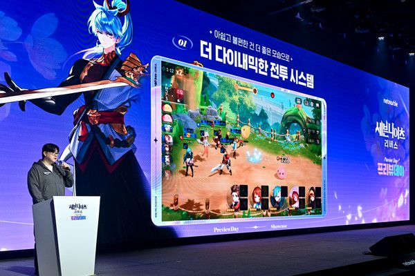 넷마블(대표 김병규)은 24일 구로 사옥에서 '세븐나이츠 리버스 프리뷰 데이'를 갖고 이 같은 내용을 발표했다. 이 작품은 글로벌 누적 7000만 다운로드를 달성한 '세븐나이츠'의 판권(IP)을 활용한 수집형 RPG로, 온라인과 모바일 크로스 플레이를 지원한다.