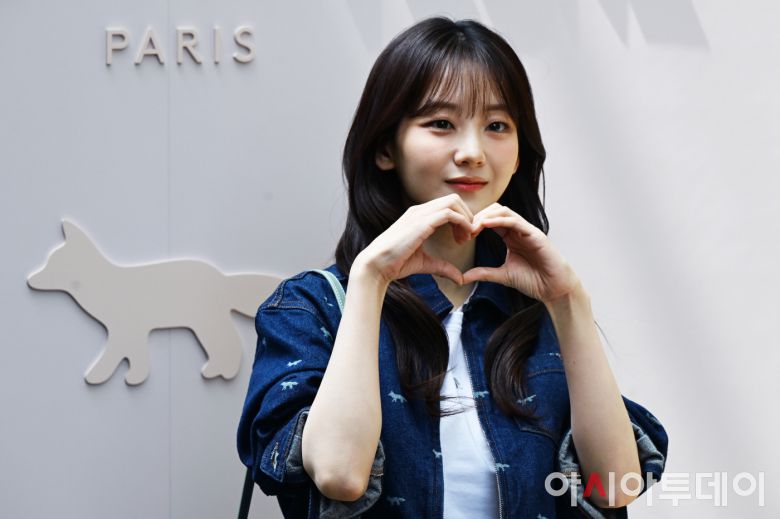 [포토]조이현, 메종 키츠네 25SS 컬렉션서 '손하트~'