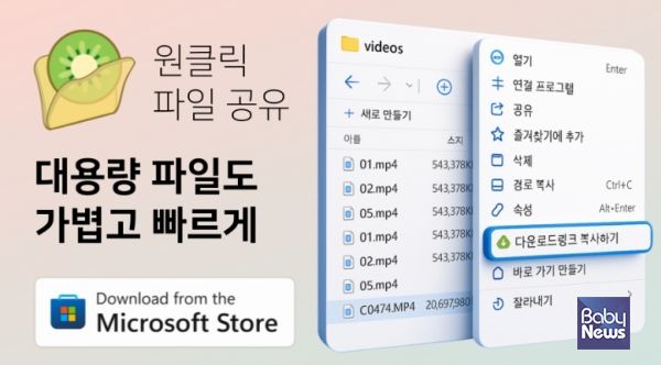 파일키위(대표 조요섭)가 PC에서 마우스 우클릭 한 번으로 간편하게 대용량 파일을 무료로 공유할 수 있는 새로운 PC 애플리케이션 '원클릭파일공유'를 정식 출시했다. ⓒ파일키위 |