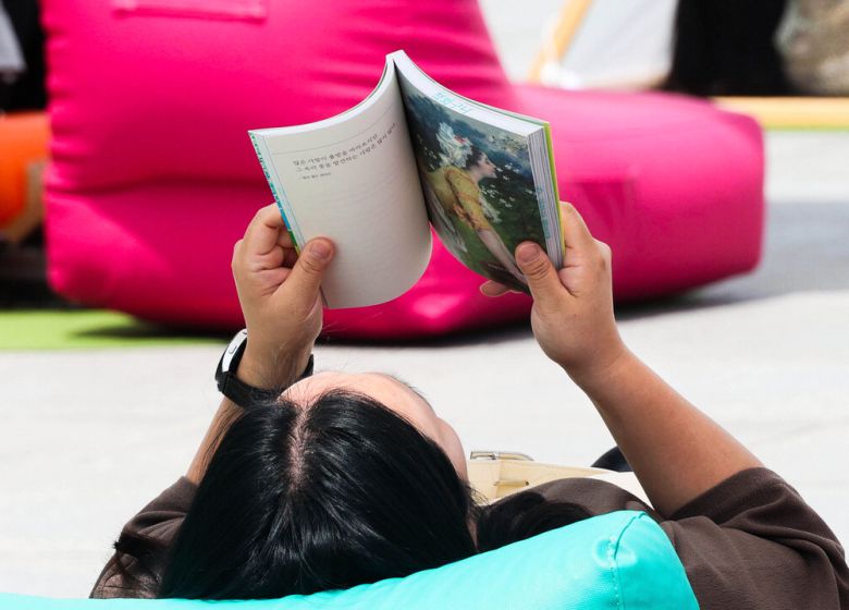 서울 광화문광장에서 한 여성이 누운 채로 독서 삼매경에 빠져 있는 모습입니다. 좋은 책의 힘은 이렇게 때와 장소를 가리지 않고 발휘되는 것 같습니다. 이충우 기자 |