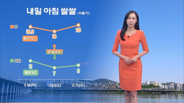 내일 아침은 10도 밑으로 떨어지며 일부 내륙에는 서리가 내리겠고요.