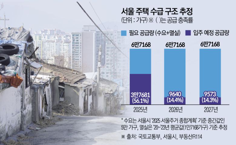 이 같은 수요와 멸실 주택을 감안하면 서울에선 연간 약 6만7000가구 수준의 신규 공급이 필요하다는 계산이 나온다.