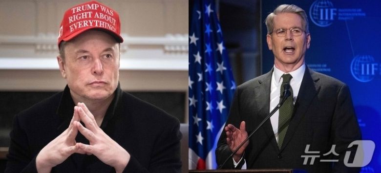 일론 머스크 테슬라 최고경영자(CEO)와 스콧 베선트 미 재무장관. ⓒ AFP=뉴스1 |