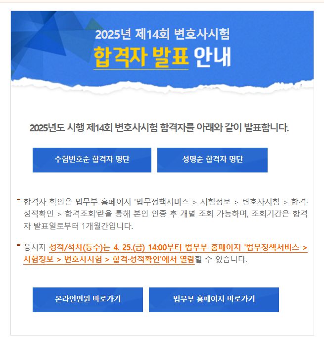2025 제14회 변호사시험 합격자 발표, 커트라인 점수는?