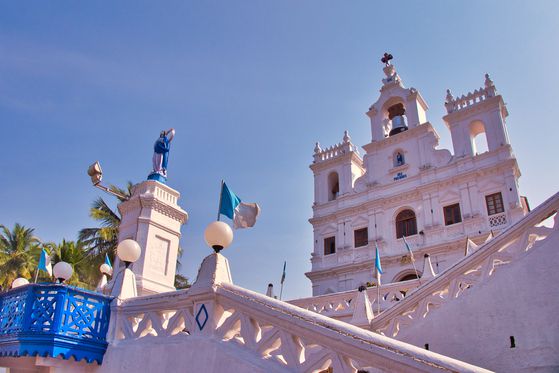 고아 인구의 25%가량이 기독교인이다. 포르투갈 식민지 시절 세운 성당이 지금도 도시 곳곳에 남아 있다. 사진은 고아 파나지 지역에 있는 성모 성당.
