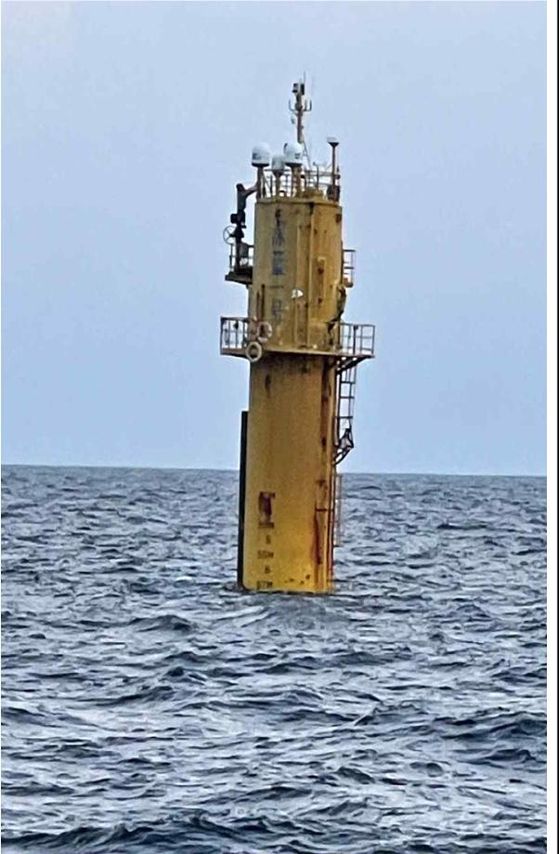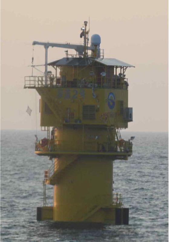 한·중 간 배타적 경제수역(EEZ)이 겹치는 서해 잠정조치수역(PMZ) 곳곳에 중국이 일방적으로 설치한 구조물 사진. 위쪽부터 시추 설비 형태의 구조물(2022년). 선란 1호(2018년). 선란 2호(2024년). [사진 국민의힘 엄태영 의원실]