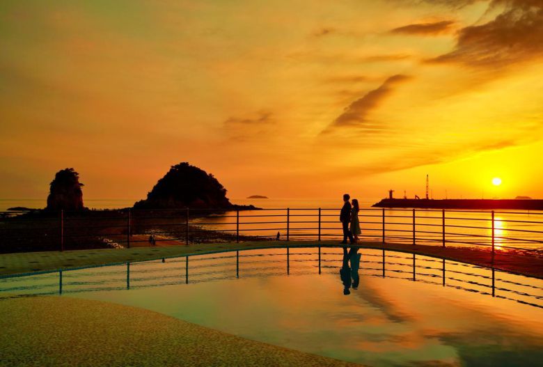 ‘꽃지해수욕장’은 수심이 얕고 물이 맑아 가족 단위 관광객들에게 인기가 많다. 특히 할미바위와 할아비바위 사이로 해가 지는 풍경은 태안의 대표적인 일몰 명소로 손꼽힌다.
