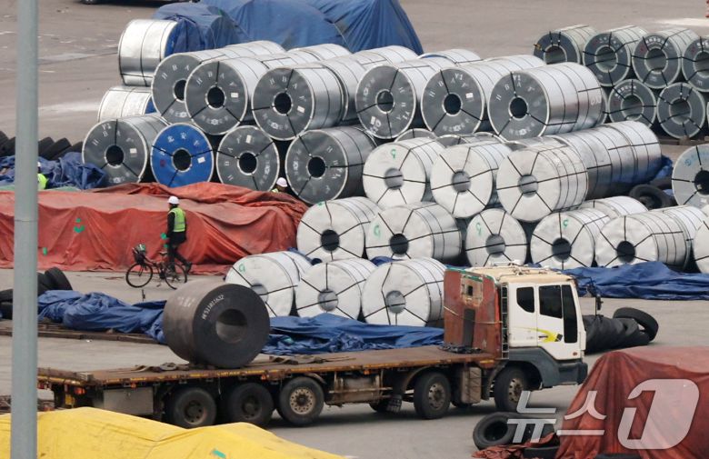 사진은 12일 오후 경기 평택시 포승읍 평택항 수출 야적장에 철강 제품이 쌓여 있는 모습. 2025.3.12/뉴스1 ⓒ News1 김영운 기자