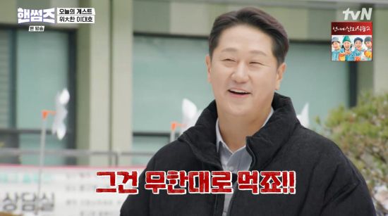 더 나아가 김동현은 "오늘은 저랑 태현이 형이 소식가로 보일 정도로 엄청나게 많이 잘 먹는다"라며 칭찬했고, 차태현은 "실제로는 그렇지 않다고"라며 궁금해했다. 이대호는 "전 많이 먹진 않는다. 맛있는 걸 많이 먹어서 그렇지"라며 털어놨고, 차태현은 "이대호 선수가 안 먹는 건 맛이 없는 거네"라며 덧붙였다.