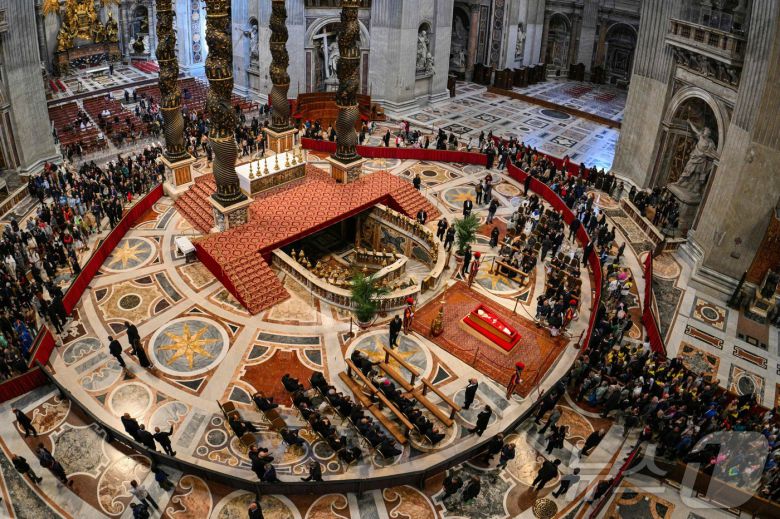 프란치스코 교황 시신이 안치된 성베드로 대성당.2025.04.25. ⓒ AFP=뉴스1 |
