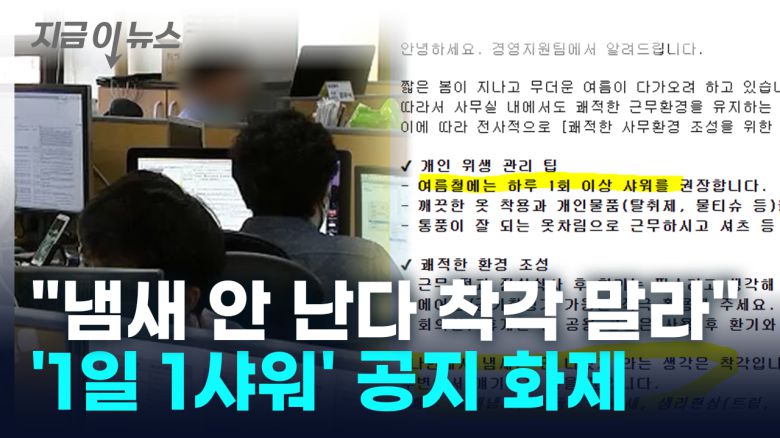24일 엑스(X·옛 트위터) 이용자 A씨는 "경영지원팀에서 '1일1샤워' 공지가 떴다"며 상세한 내용을 공유했습니다.