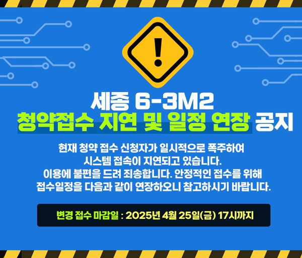 이에 LH 측은 "청약자들의 안정적인 접수를 위해 접수 일정을하루 연장한다"고 공지했다.