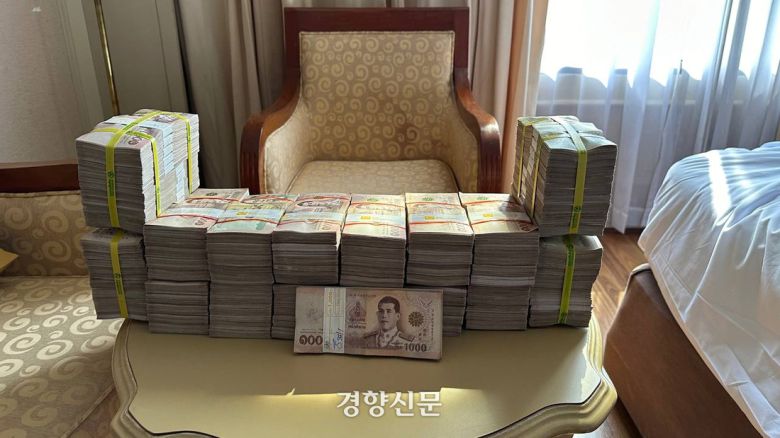 비트코인을 빼돌려 경찰에 검거된 일당이 바트화로 환전한 범죄수익금. 서울경찰청 제공 |