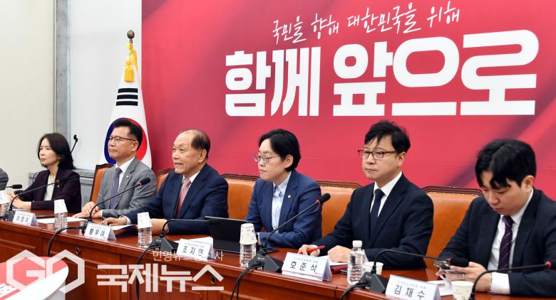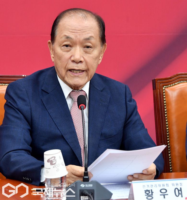 (서울=국제뉴스) 황우여 국민의힘 선거관리위원장이 25일 오전 서울 여의도 국회에서 열린 국민의힘 대통령후보자 선거관리위원회 6차 회의에서 발언하고 있다./사진=이용우 기자