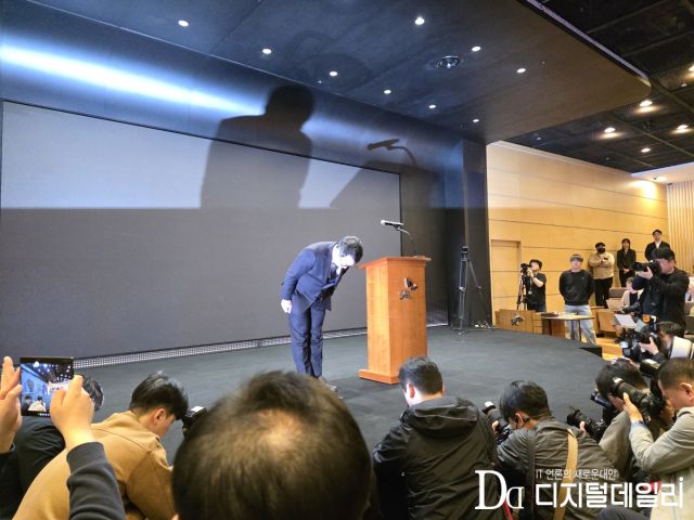 유 대표는 사과문을 낭독 후 기자들 질문을 받지 않고 곧바로 퇴장했다. 유 대표는 “이용자와 언론의 궁금증과 불안을 모두 해소해주고 싶지만, 사고 원인과 규모 등에 대한 정부 조사가 이제 막 시작된 상황”이라며 “추후 사고의 원인과 피해 규모를 비롯해 자세한 조사 결과가 나오는 대로 본인이 직접 추가 조치 방안 등을 설명하는 자리를 마련하겠다”고 말했다.