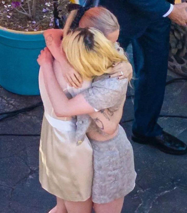 공개된 사진에는 크리스틴 스튜어트와 딜런 마이어가 결혼식에서 키스하는 모습이 담겼다.
