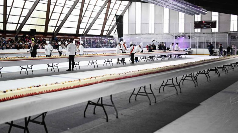 프랑스에서 세계에서 가장 긴, 초대형 딸기 케이크가 등장했습니다.