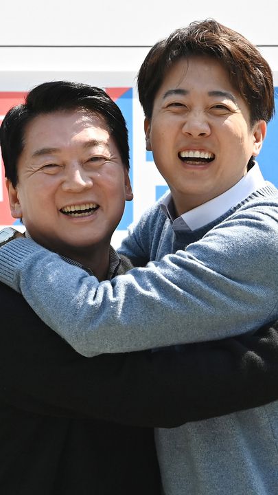 안 후보는 이날 오후 경기 성남시 판교역 인근 광장에서 이준석 개혁신당 대선 후보와 함께 ‘AI(인공지능) 기술패권’을 주제로 1시간 30분가량 대담했다. “화끈하게 포옹하고 시작하자”라는 진행자의 주문에 따라 두 사람은 대담 시작 전 환한 얼굴로 끌어안았다. 2023년 11월 서울 여의도의 한 복국집 가벽 사이로 신경전을 벌이는 등 오랜 기간 정치적 앙숙이었던 두 사람의 반전 모습이었다.