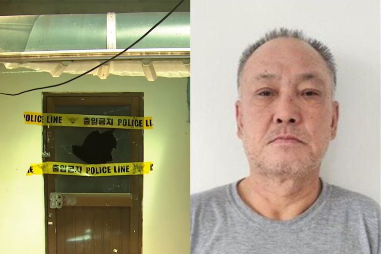 대전 중구 호동에 있는 지인의 집(왼쪽)에서 지인을 살해한 혐의로 신상이 공개된 박찬성(64). TJB 보도화면 캡처·대전지검 제공 |