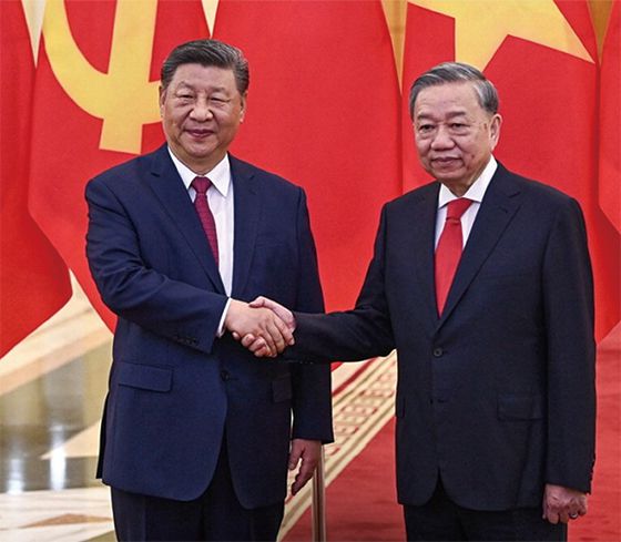 시진핑 중국 국가주석(왼쪽)이 지난 4월 14일 베트남 하노이 공산당 중앙위 청사에서 또럼 서기장과 정상회담을 진행했다. |