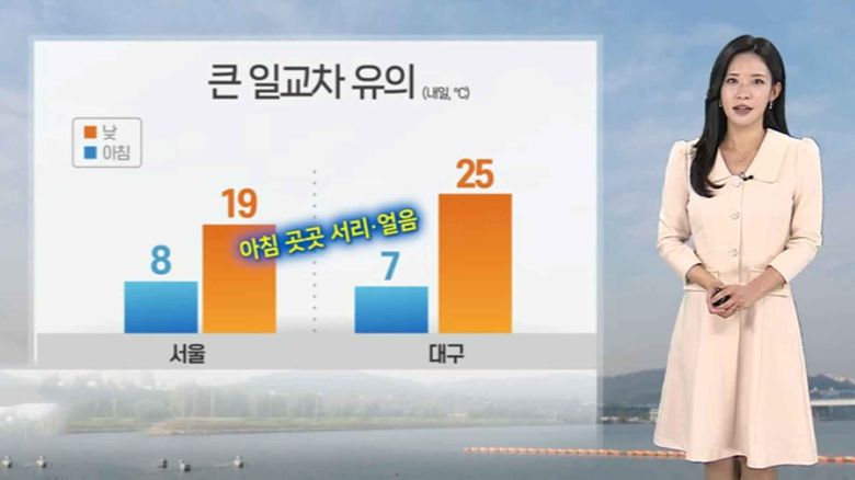 내일 아침기온 보시면 서울이 8도, 대전 6도, 광주는 7도 보이겠고요.