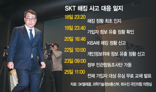 SK텔레콤은 18일 가입자 유심 정보를 관리하는 홈가입자서버(HSS)가 악성코드 감염으로 해킹당한 정황을 확인해 한국인터넷진흥원(KISA)과 개인정보보호위원회에 신고했다. 유 대표의 사과에도 여전히 사고 원인과 피해 규모가 파악되지 않은 만큼 우려는 지속될 것으로 전망된다. 삼성전자는 최근 주요 계열사 임원들을 상대로 “SK텔레콤 이용자는 유심을 교체하라”고 공지했다. 이에 해당 임원 대부분이 유심을 교체한 것으로 알려졌다.
