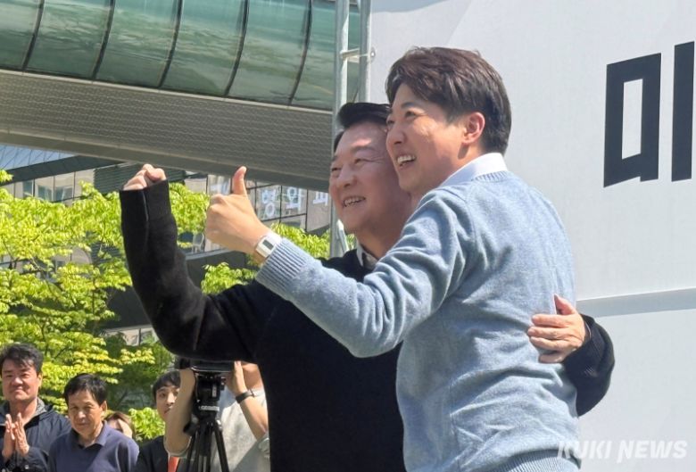 AI(인공지능) 기술패권을 위한 국가 방향성을 논하는 자리에 ‘이공계 대통령’을 자부하는 두 후보가 마주했다. 이준석 개혁신당 대선 후보와 최근 국민의힘 경선 4강에 당당히 이름을 올린 안철수 후보다. 이 후보와 안 후보는 25일 오후 신분당선 판교역 광장에서 ‘미래를 여는 단비토크’를 주제로 대화했다. 6·3 조기대선이 40일도 남지 않았고 하물며 경쟁 관계인 두 후보가 마주할 일은 표심 목적이 아니고선 드물다. 이날 회동에 정쟁은 없었다. 국가가 당면한 현실을 직시하고 대안을 모색하는 유익한 자리였다. 청중도 특정 후보를 위한 연호나 박수를 삼갔다.