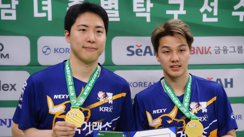 임종훈-안재현 조는 강원도 강릉아레나에서 열린 대회 남자일반부 복식 결승에서 박강현-우형규 조를 3대 0으로 완파했습니다.