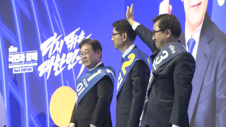 이재명, 김경수, 김동연 후보는 광주 서구 김대중컨벤션센터에서 호남권 합동연설을 진행합니다.