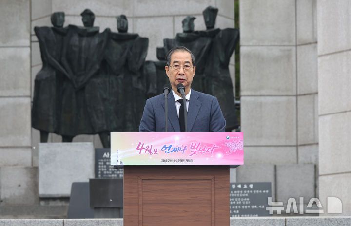 한 대행은 "4·19혁명은 대한민국을 넘어 세계 민주주의 역사에 하나의 이정표를 세운 우리의 빛나는 자긍심"이라며 "자유, 민주, 정의를 외쳤던 의로운 학생과 시민들의 숭고한 희생이 우리가 누리는 자유민주주의의 초석이 됐다"고 밝혔다.
