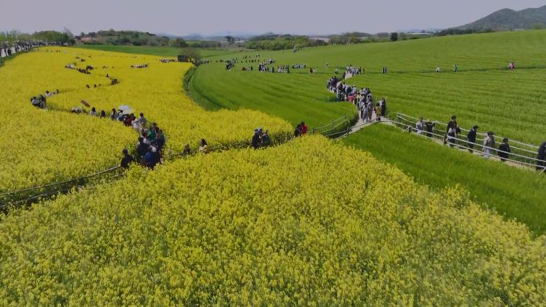 방문객들은 탁 트인 자연 속에서 초록과 노랑이 조화를 이루는 봄의 색에 푹 빠져있습니다.
