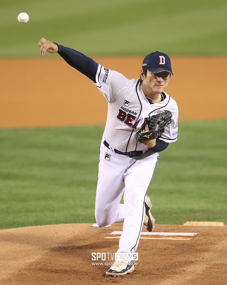 정수빈(중견수)-제이크 케이브(우익수)-양석환(1루수)-김재환(지명타자)-강승호(3루수)-오명진(2루수)-김민석(좌익수)-김기연(포수)-박준영(유격수), 선발투수 잭 로그