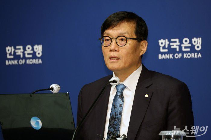 이창용 한국은행 총재가 17일 서울 중구 한국은행 본관에서 열린 금융통화위원회 본회의를 마친 후 통화정책방향 기자 간담회를 열고 취재진의 질문에 답하고 있다. 25.04.17. 사진공동취재단 사진=사진공동취재단 |