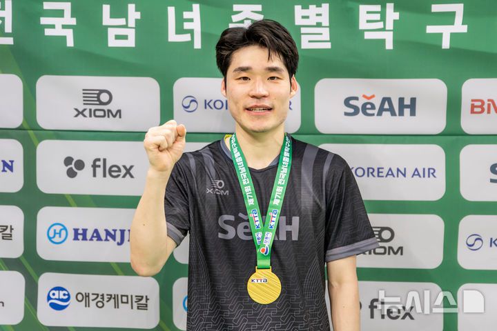[서울=뉴시스]안경남 기자 = 장우진(29·세아)이 제71회 전국남녀종별탁구선수권대회 남자일반부 개인단식 정상에 올랐다.