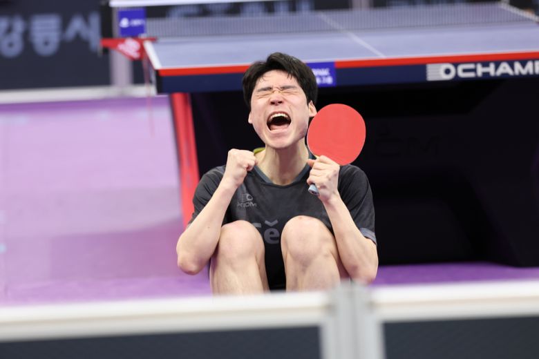 우승 확정 후 포효하는 장우진(대한탁구협회 제공)