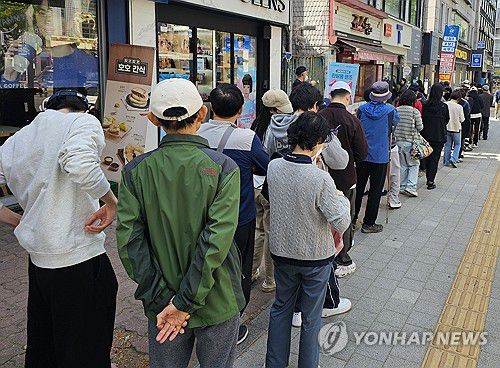 (서울=연합뉴스) 임성호 기자 = 26일 서울 시내 한 SKT 대리점에서 고객들이 유심을 교체하기 위해 줄을 서 기다리고 있다. 2025.4.26 sh@yna.co.kr