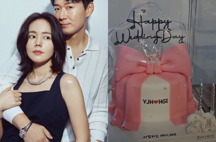 또한 한가인은 'Happy Wedding Day'라는 메시지가 적힌 케이크 사진도 공개했다. 특히 케이크 하단에는 '사랑하는 제이, 제우'라는 문구가 새겨져 있어 눈길을 끈다. 두 사람의 자녀가 부모님의 결혼 기념일을 축하하는 이벤트를 선보인 것으로 보인다.
