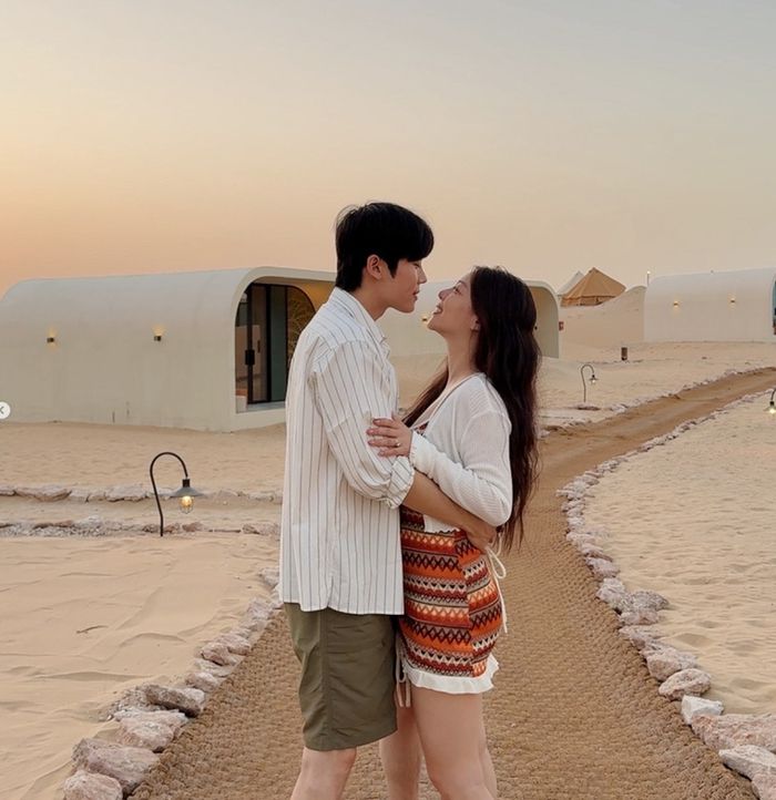 사막의 광활한 지평선과 붉게 물든 노을, 고급스러운 리조트 내부가 어우러져 화보 같은 분위기를 자아냈다. 두 사람은 서로를 바라보며 다정한 눈빛을 교환하거나 사막을 산책하며 자연을 만끽하는 모습으로 보는 이들의 부러움을 샀다.