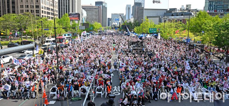 26일 서울 광화문 네거리 인근에서 열린 '국민저항권 광화문국민대회'에서 참석자들이 윤석열 전 대통령 복귀 촉구 및 탄핵 무효를 외치고 있다. /특별취재팀 |