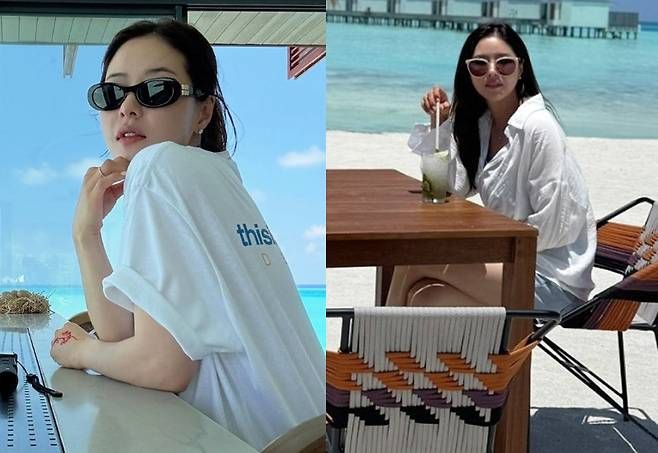 박하나는 오버핏 화이트 반팔티에 블랙 프레임 선글라스를 매치해 시크하면서도 청량한 휴양지 무드를 완성했다.사진=박하나 SNS |