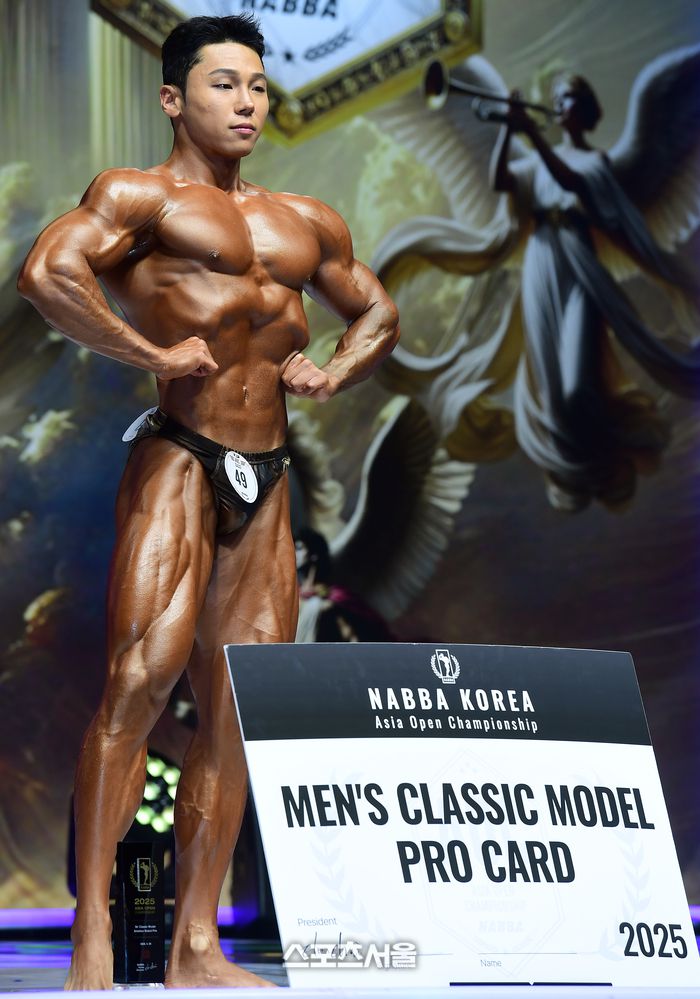 [스포츠서울 글·사진 | 이주상 기자] 26일 세계적인 보디빌딩·피트니스 단체인 나바(NABBA)가 주관하는 ‘나바코리아 AOC(ASIA OPEN CHAMPIONSHIP)’가 서울 은평구 홍은동에 있는 스위스 그랜드호텔에서 열렸다. 맨즈 클래식 부문에서 그랑프리를 차지한 박수현이 완벽한 근육미를 뽐내고 있다. 나바(NABBA)가 주관하는 이번 대회는 보디빌딩을 비롯해 스포츠모델, 클래식모델, 비키니모델 등 7개 부문에서 열띤 경쟁을 펼쳤다. 각 부문의 그랑프리는 나바가 공인하는 최고의 영예인 프로카드가 주어졌다. rainbow@sportsseoul.com