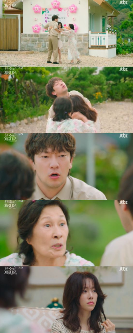 (엑스포츠뉴스 이이진 기자) '천국보다 아름다운' 한지민이 손석구와 김혜자 앞에 갑작스럽게 나타났다.