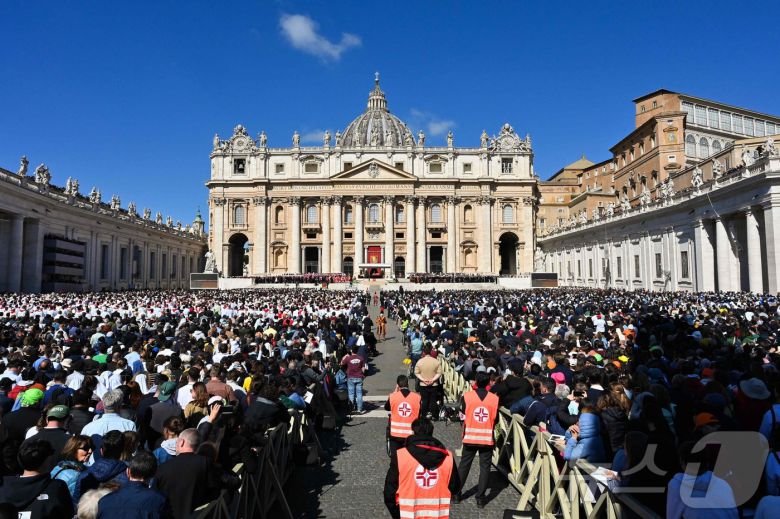 26일(현지시간) 바티칸 성 베드로 광장에서 프란치스코 교황의 장례 미사가 엄수되고 있다. 2025.04.26. ⓒ AFP=뉴스1 ⓒ News1 이지예 객원기자 |
