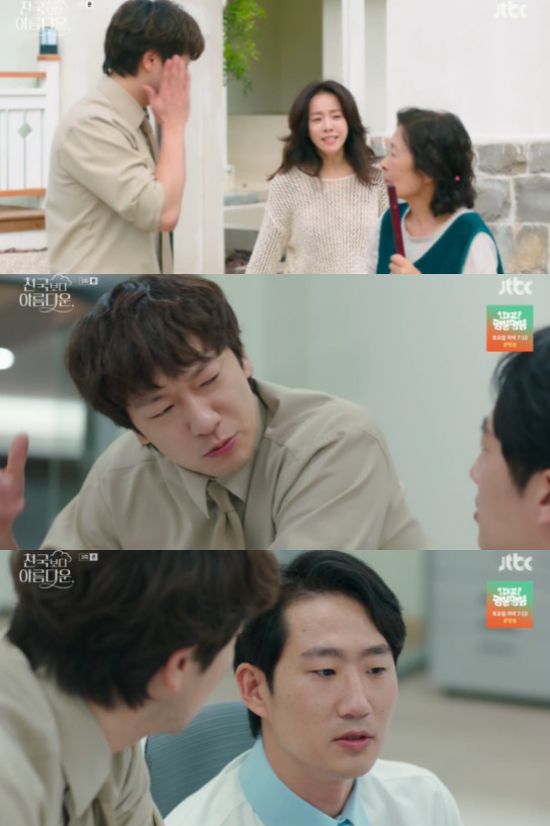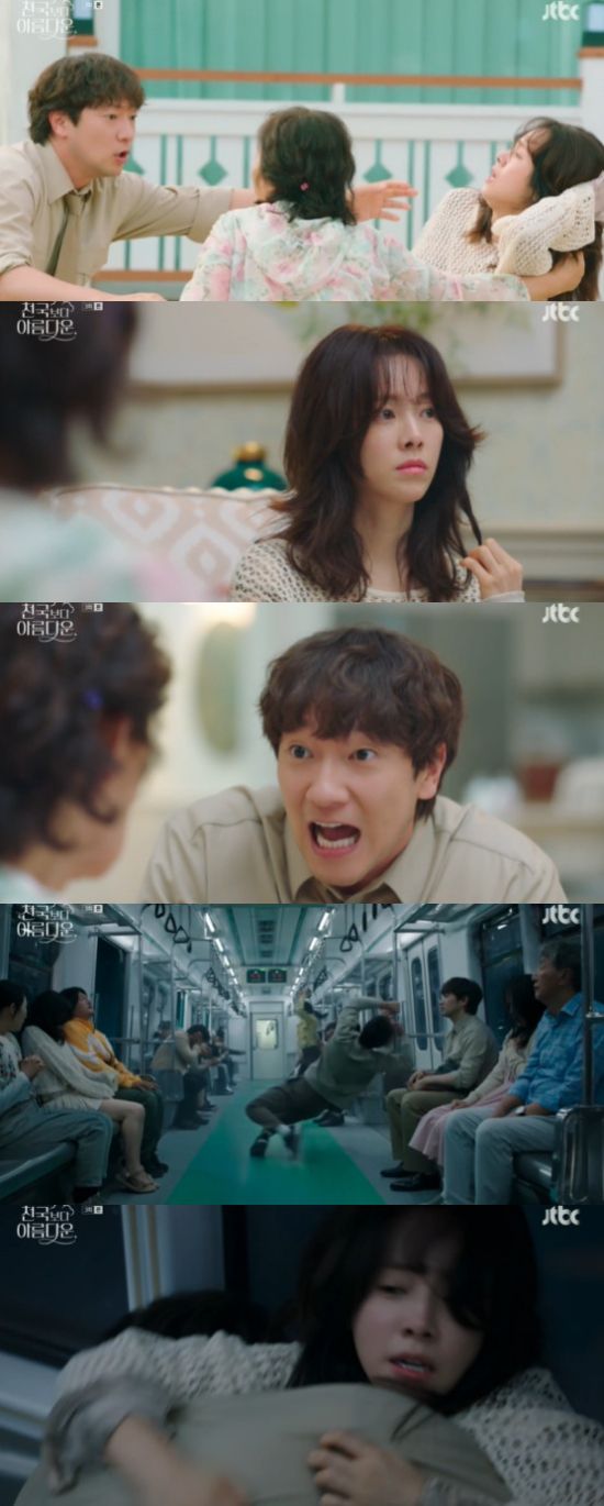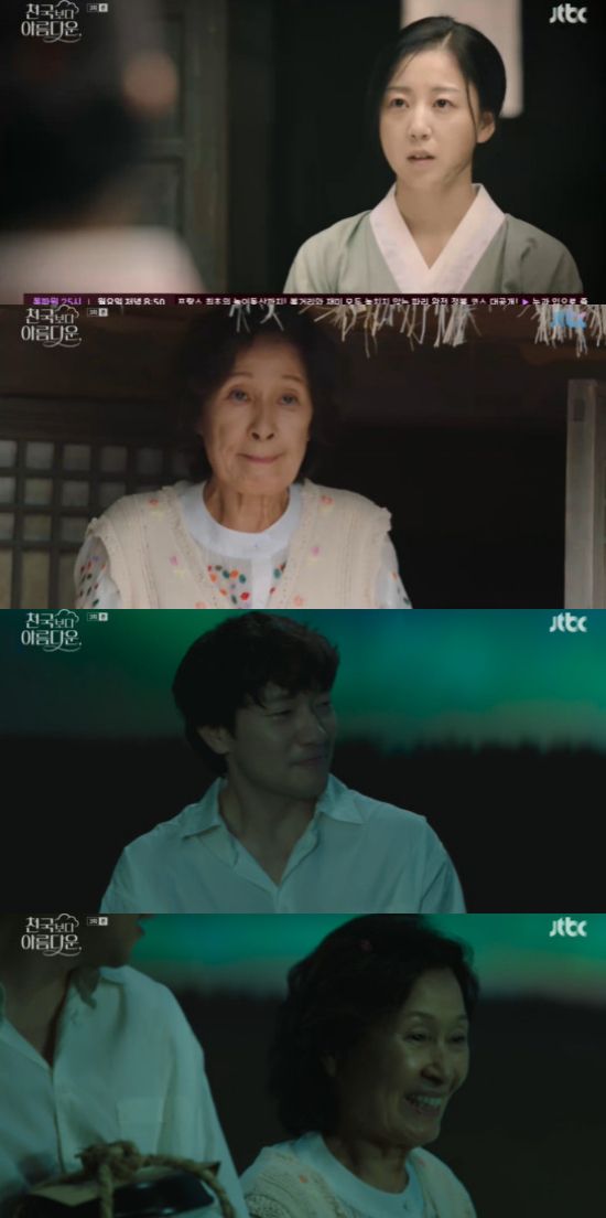 26일 방송된 JTBC 새 토일드라마 '천국보다 아름다운' 3회에서는 솜이(한지민 분)가 고낙준(손석구)과 이해숙(김혜자)의 집에서 지내는 모습이 그려졌다.
