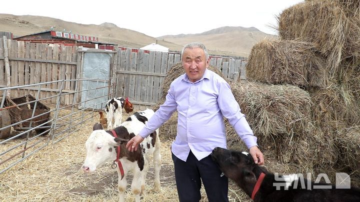 [울란바토르·자르갈란트(몽골)=뉴시스] 김예진 기자 = 몽골 자르갈란트에서 축산업에 종사하고 있는 다와자브 뱜브수렝(65)씨의 하루는 새벽 6시부터 시작된다. 키우는 소들을 살피고 8시부터 3시간 동안 먹이주기, 착유를 마무리한다. 그리고 방목하는 소들이 너른 벌판으로 나가 풀을 뜯도록 '출근' 보낸다.