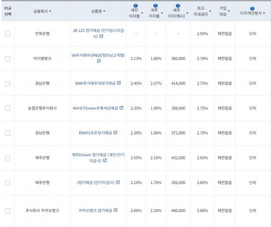 27일 금융감독원 금융상품통합비교공시에 따르면 은행 24개월 정기예금 상품 중 최고 우대금리를 제공하는 상품은 전북은행의 ‘JB 123 정기예금’으로, 최고 2.95%의 금리를 제공한다. 우대 조건은 자동재예치 횟수에 따라 적용되며 ▲1회차 0.1%p ▲2회차 0.2%p ▲3회차 0.3%p 등이다.